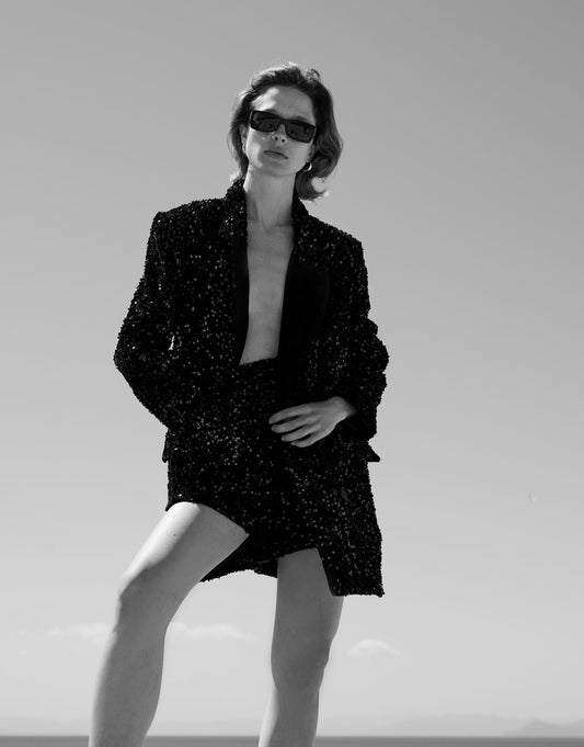 Black Velvet Sequins Suit