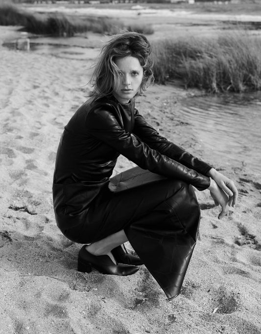 Eco Leather cropped jacket & high waist pencil pants