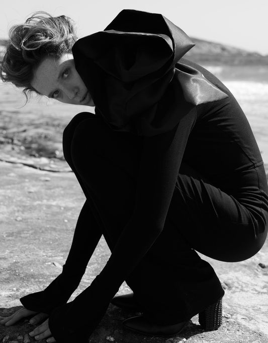 Black dress with ruff collar